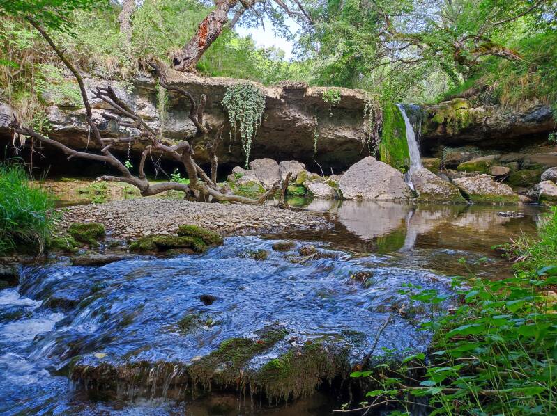 Una de las excursiones más emblemáticas tiene su origen en el pintoresco pueblo de Sáseta (a 8 kilómetros en coche de Suite Curry) y discurre cauce arriba por el desfiladero del río Ayuda entre cascadas, pozas donde refrescarse, hayedos, rebaños de vacas y caballos. La meta se encuentra en Okina, un pueblo rodeado de montes y leyendas. Esta excursión, de 11 kilómetros ida y vuelta -si salís de Pariza andando serán 19-, forma parte del icónico GR-38, conocido como la Ruta del Vino y el Pescado en recuerdo del trayecto de 166 kilómetros que los antiguos arrieros recorrían para llevar sus caldos hasta Bermeo, en la costa norte del País Vasco, y regresar a casa con peces en salazón.